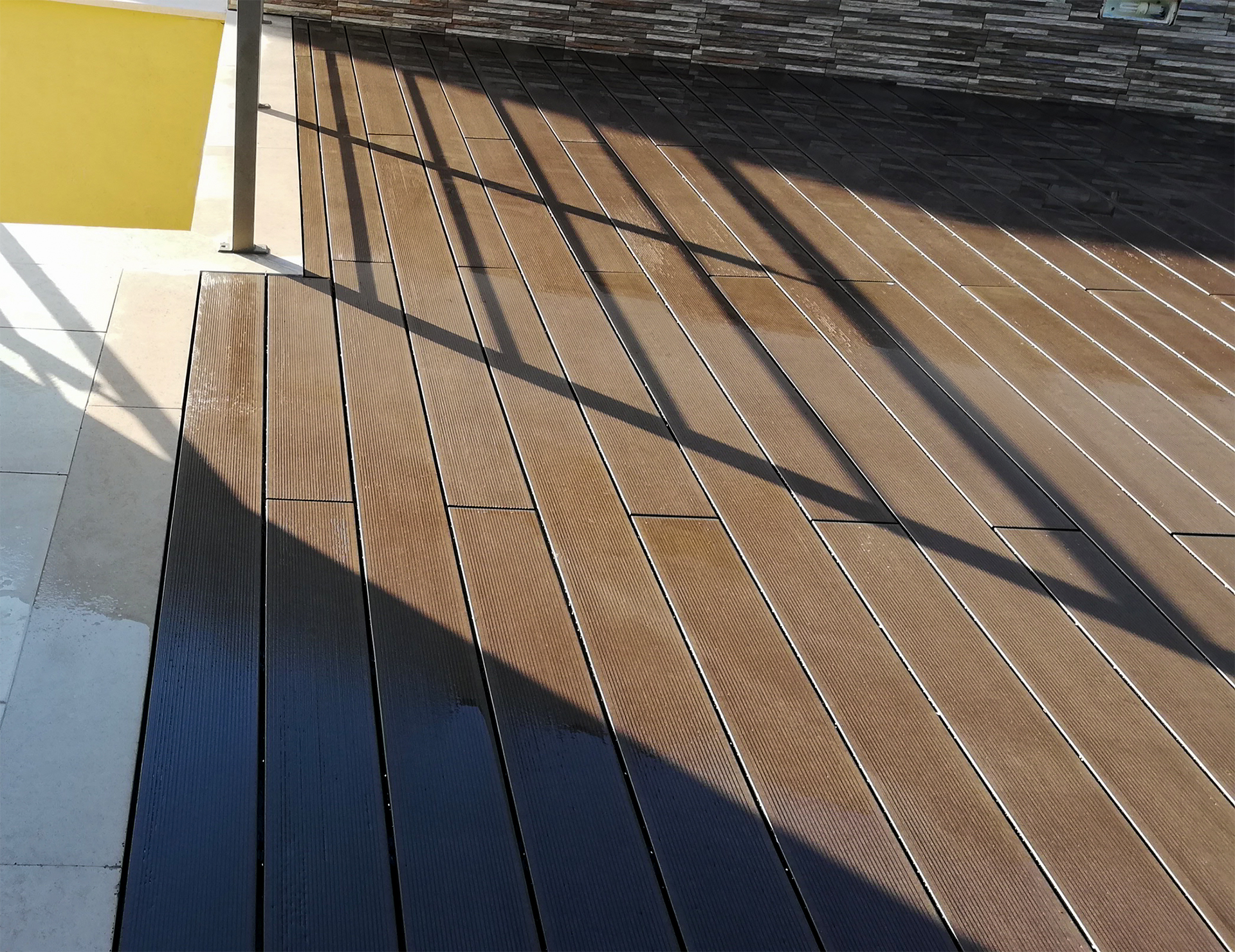 A boa notícia é que o deck compósito CDECK instala-se sobre o pavimento existente — betão, mosaico ou azulejo — sem necessidade de o remover. O espaço fica renovado em pouco tempo, sem obras de demolição.